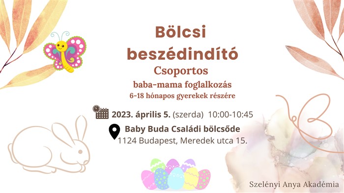 Aktuális téma: Évszakok váltakozása. (Húsvét) Csoportos foglalkozás 18-35 hónapos gyerekek részére, 🎓︎ logopédus vezetésével! Hozd el gyermekedet Hamar-Szelényi Éva ovi- előkészítő foglalkozására, ahol - a szókincsbővítésen, - a viselkedés- és - érzelemszabalyozáson, - önállóságra […]